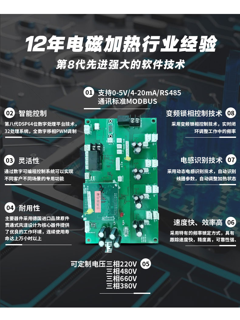 信輝源科技全新推出100Kw電磁加熱器,可以設計時間和使用年限,以防有些用戶使用后不付款,100kw電磁加熱器智能數字顯示按鍵,適用于不銹鋼等各種材質加熱。
