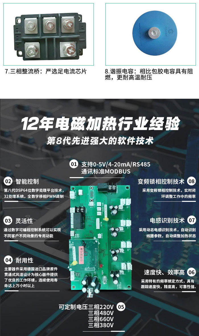 產品描述:電磁加熱器,是現今工業領域和民用設備中最廣泛的一種加熱方式,采用電磁加熱技術,電磁感應加熱技術簡稱為 IH(Induction Heating)技術,是在法拉第感應定律的基礎上發展起來的,是法拉第感應定律的一種應用形式。
