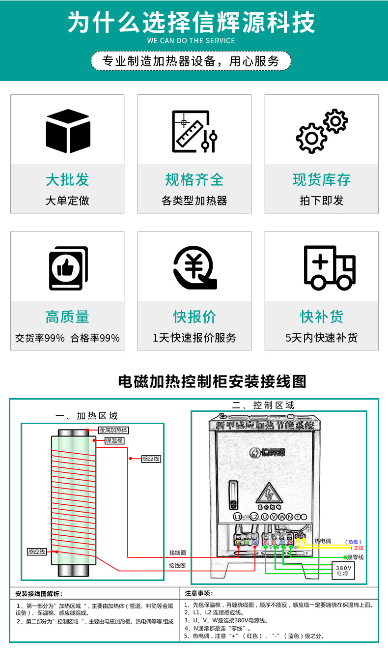 產品描述:?80kw電磁感應加熱設備采用德國進口模塊,信輝源牌80kw電磁感應加熱設備是常用規格之一,可以使用在造粒機,導熱油,采暖,加熱水,蒸汽鍋爐等等應用。免費保修一年,保用10年。