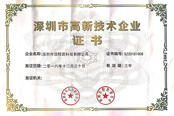 2020年是新的一年,深圳市信輝源科技有限公司也踏上了新的征程。 新年伊始,信輝源喜獲佳音!憑借專業的研發團隊、雄厚的技術實力、不斷創新的能力和科學的企業管理,成功被認定為國家高新技術企業。 2020年3月26日,公司獲得國家稅務總局深圳市科技創新委員會、深圳市財政委員會、深圳市稅務局聯合頒發的“高新技術企業”證書,正式邁入國家高新技術企業行列。