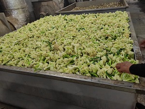 以下圖為客戶烘干花菜干,客戶敞開式烘箱,寬2米,長2米,通過電磁產(chǎn)生熱風(fēng)將其烘干,達(dá)到了滿意的效果。